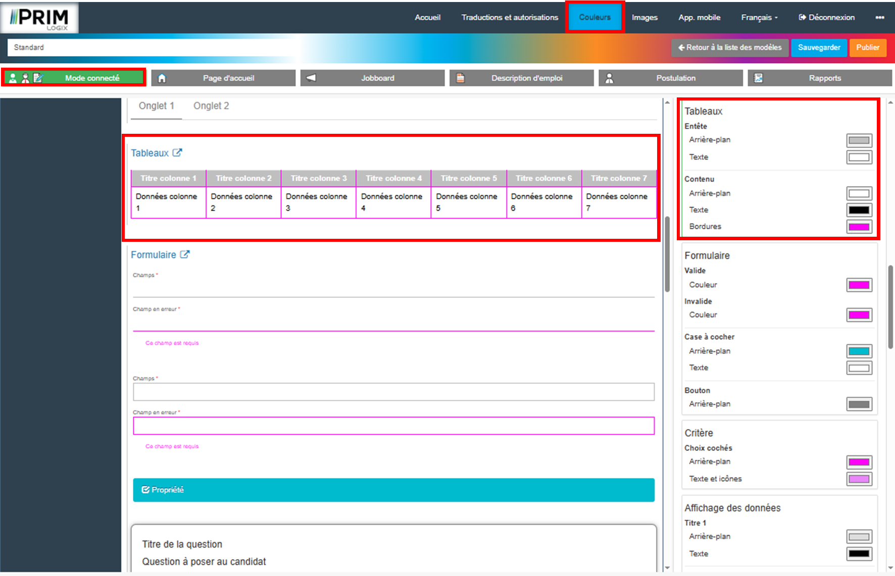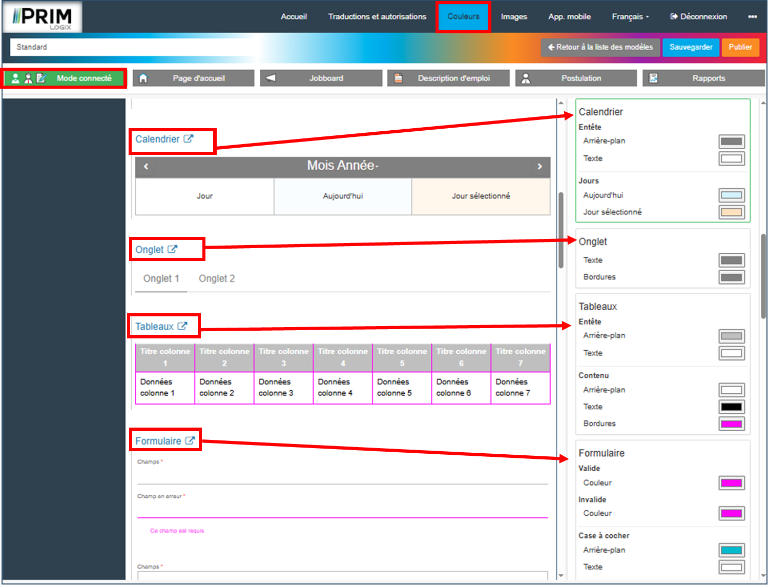 Action client : Définir ces nouvelles couleurs dans la section Mode connecté. (Voir image) |