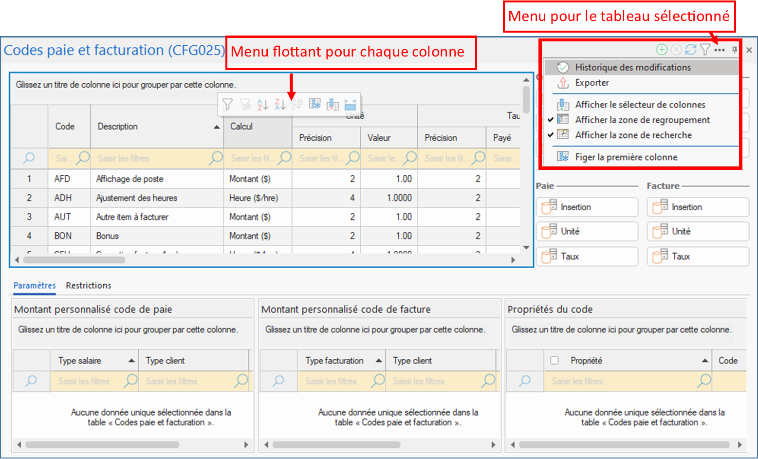 11.Nouvelles fonctionnalités avec certains tableaux : Un nouveau format de grille avec des fonctionnalités avancées est intégré à certaines fenêtres comportant des tableaux. Ces nouvelles fonctionnalités permettent notamment d'afficher ou masquer les colonnes, de regrouper les données, de modifier les tris, d'ajouter des champs de recherche à chaque colonne, et bien plus encore. Pour l'instant disponible seulement dans certaines fenêtres de configuration, ces nouvelles fonctionnalités seront peu à peu intégrées aux diverses fenêtres comportant des tableaux. (Voir image)