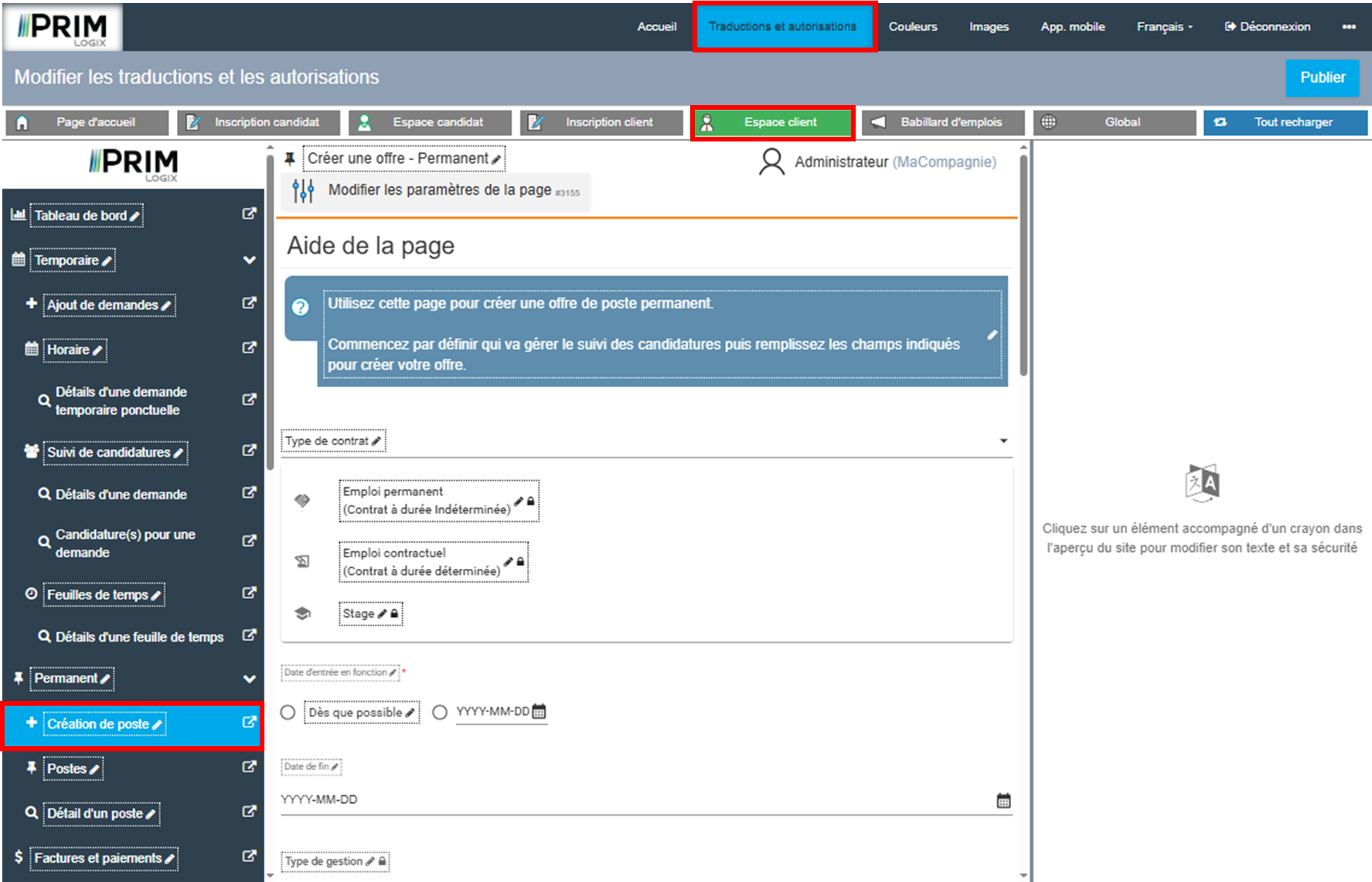 12.Portail Web client / Permanent : Refonte complète du formulaire de création d'offre permanente dans l'espace client.