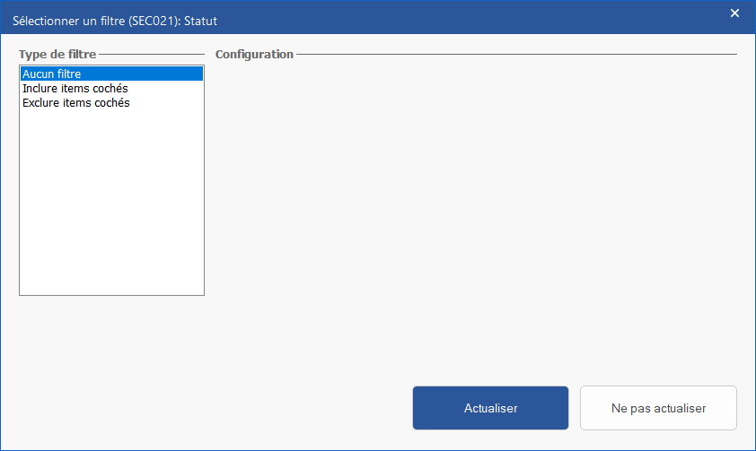 Cette action désactive tous les filtres appliqués dans la fenêtre ou la liste active. Utilisez l'icône d'actualisation pour rafraîchir la liste au besoin.