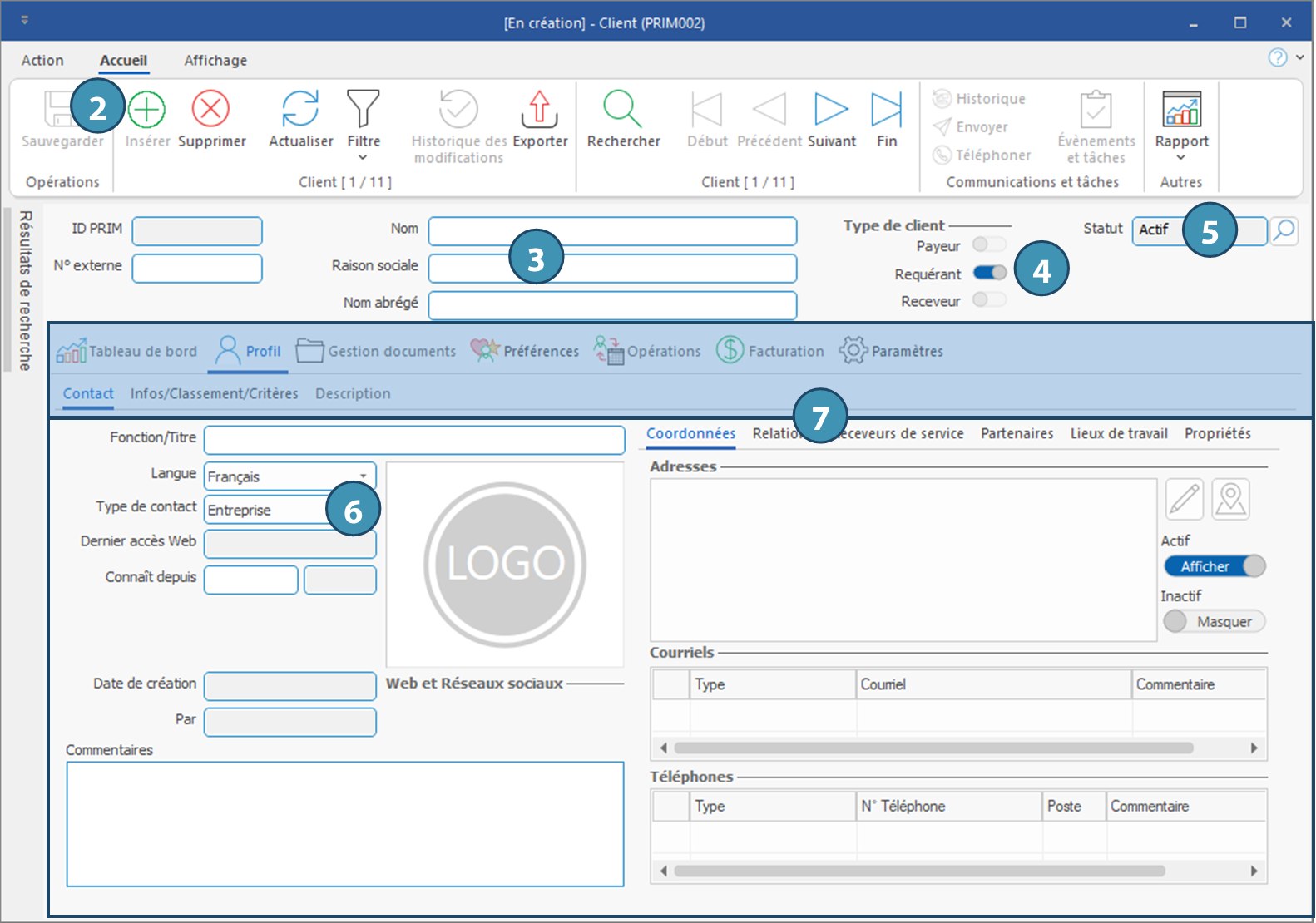 3. Type de client : PRIM Logix permet de distinguer trois types de clients. Reportez-vous à la section ci-dessous pour plus d'informations.
