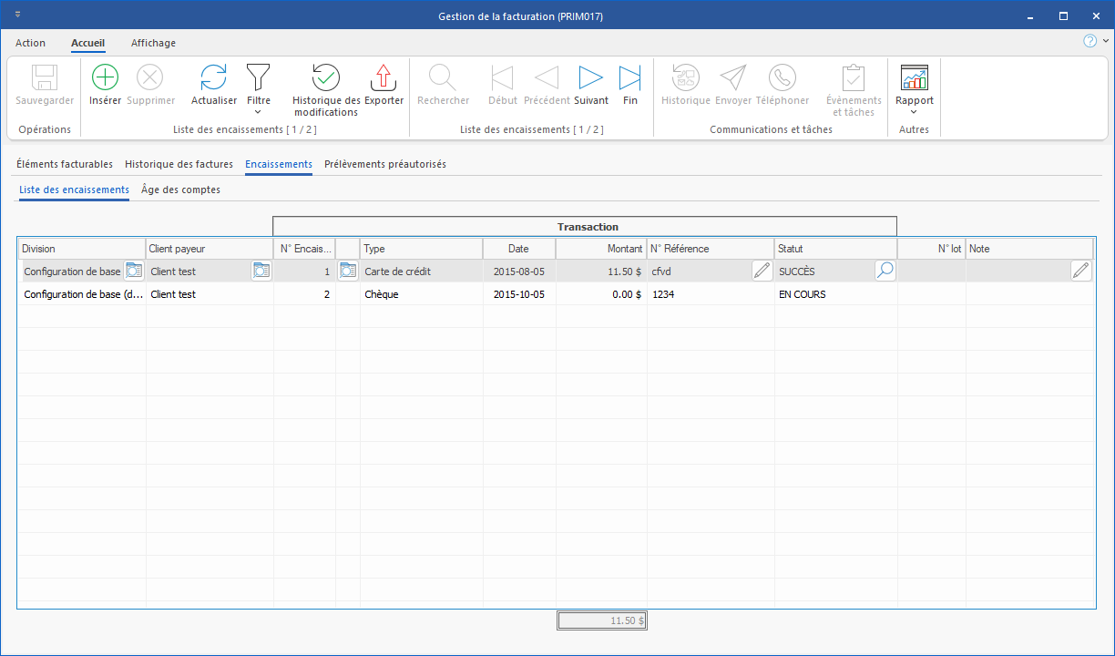 Sous-Onglet - Liste des encaissements