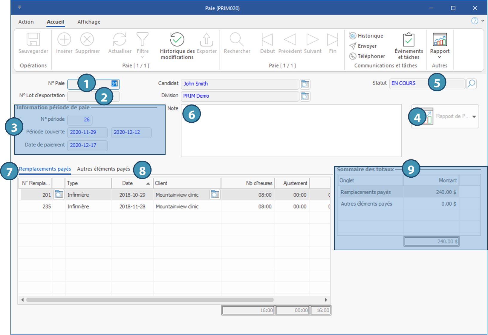 1.No paie : Numéro d'identification uniqué généré par PRIM.