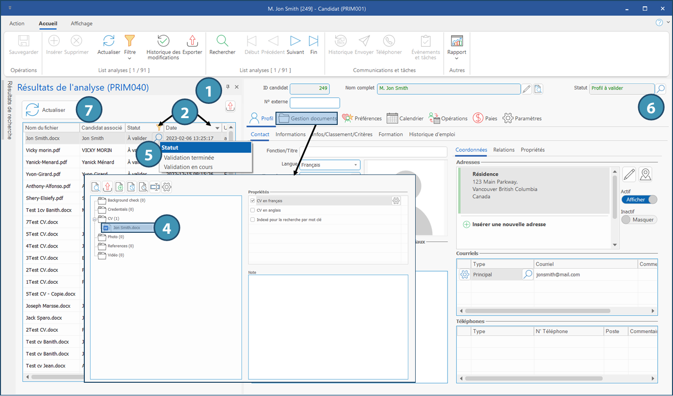 4.Le CV analysé aura été ajouté dans l'onglet Gestion documents, vous permettant de l'ouvrir au format source afin de valider les informations entrées dans le dossier.