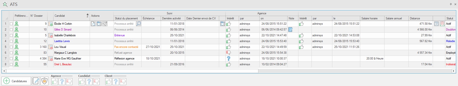 Les boutons d’intérêt servent à indiquer, pour chaque candidat, l’intérêt de l’agence, du candidat et du client :