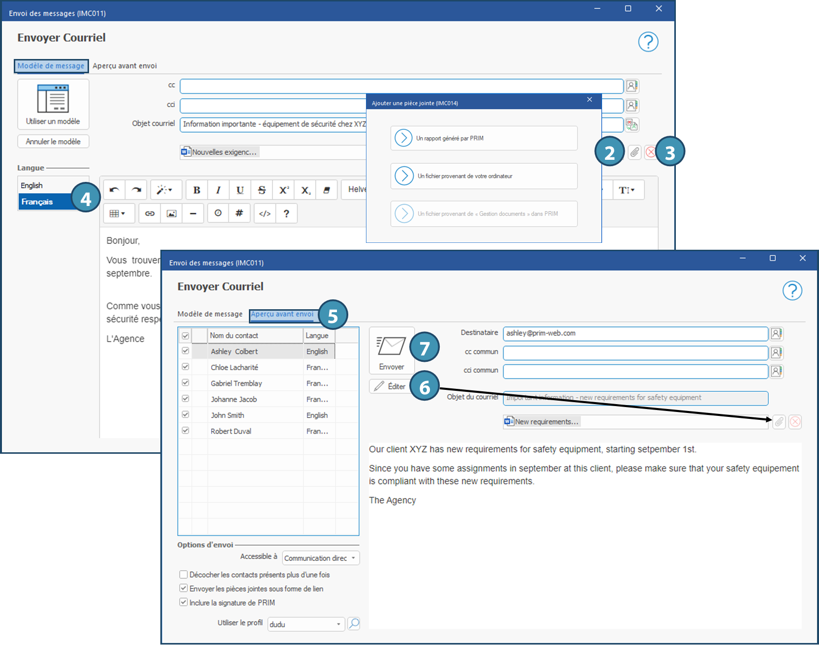 L'adresse courriel utilisée pour envoyer le courriel sera celle du profil utilisateur par défaut. Pour utiliser une autre adresse, il faut d'abord créer et sélectionner le profil utliisateur approprié.