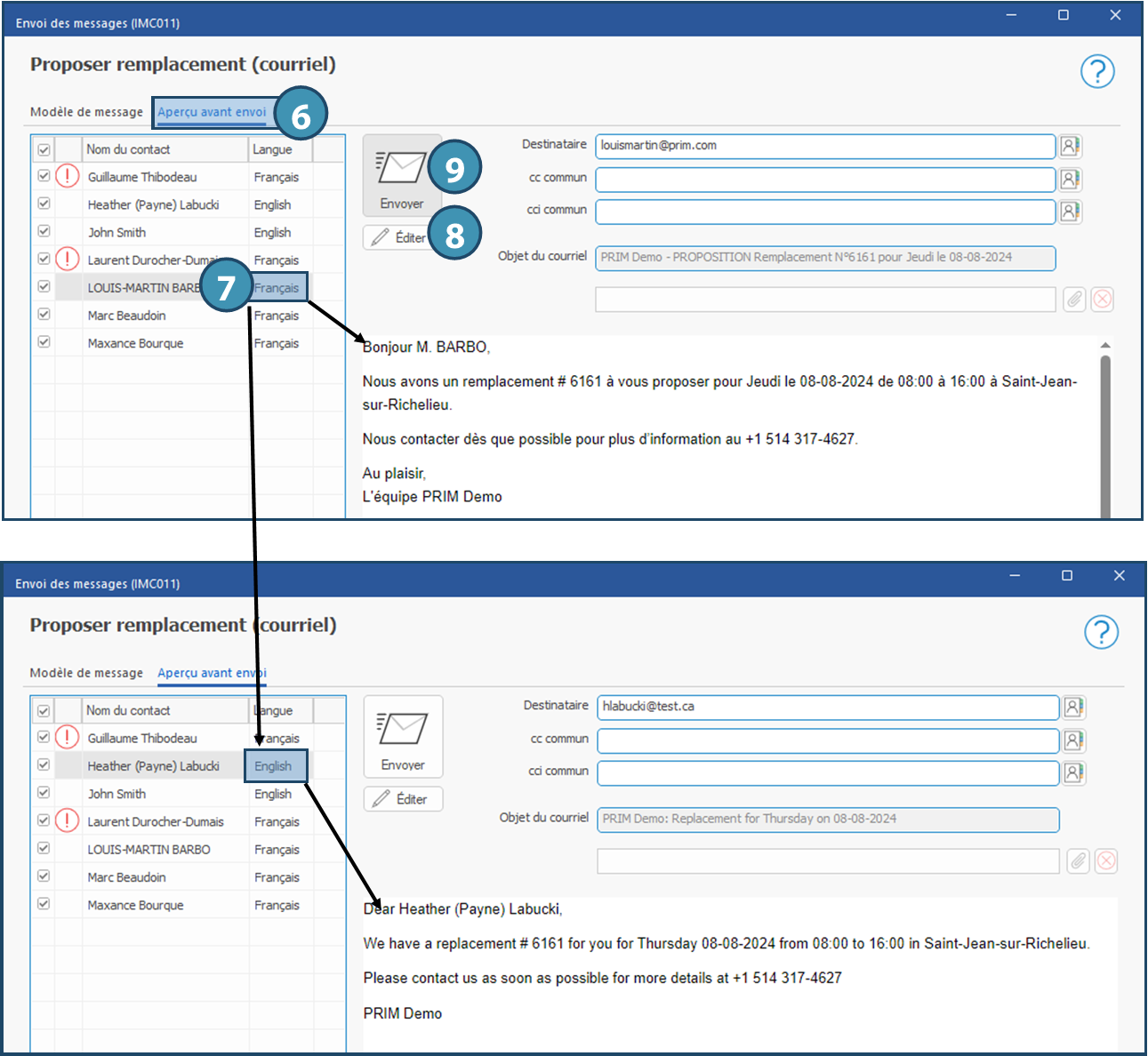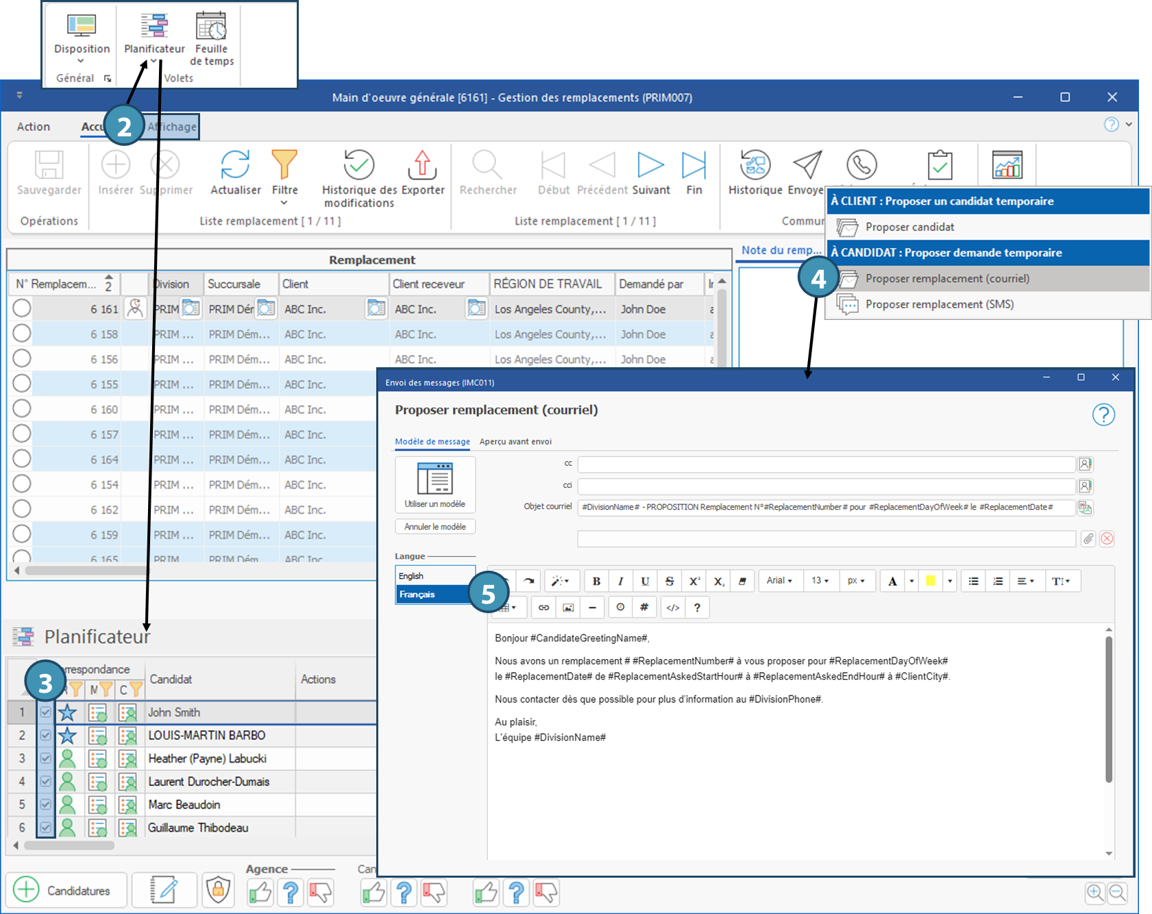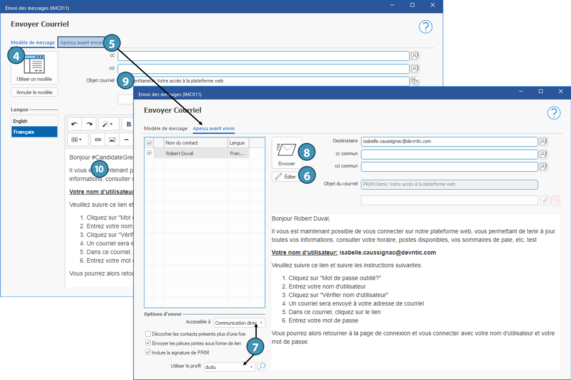 Envoyer un courriel à l'aide d'un modèle dans la langue de correspondance du candidat