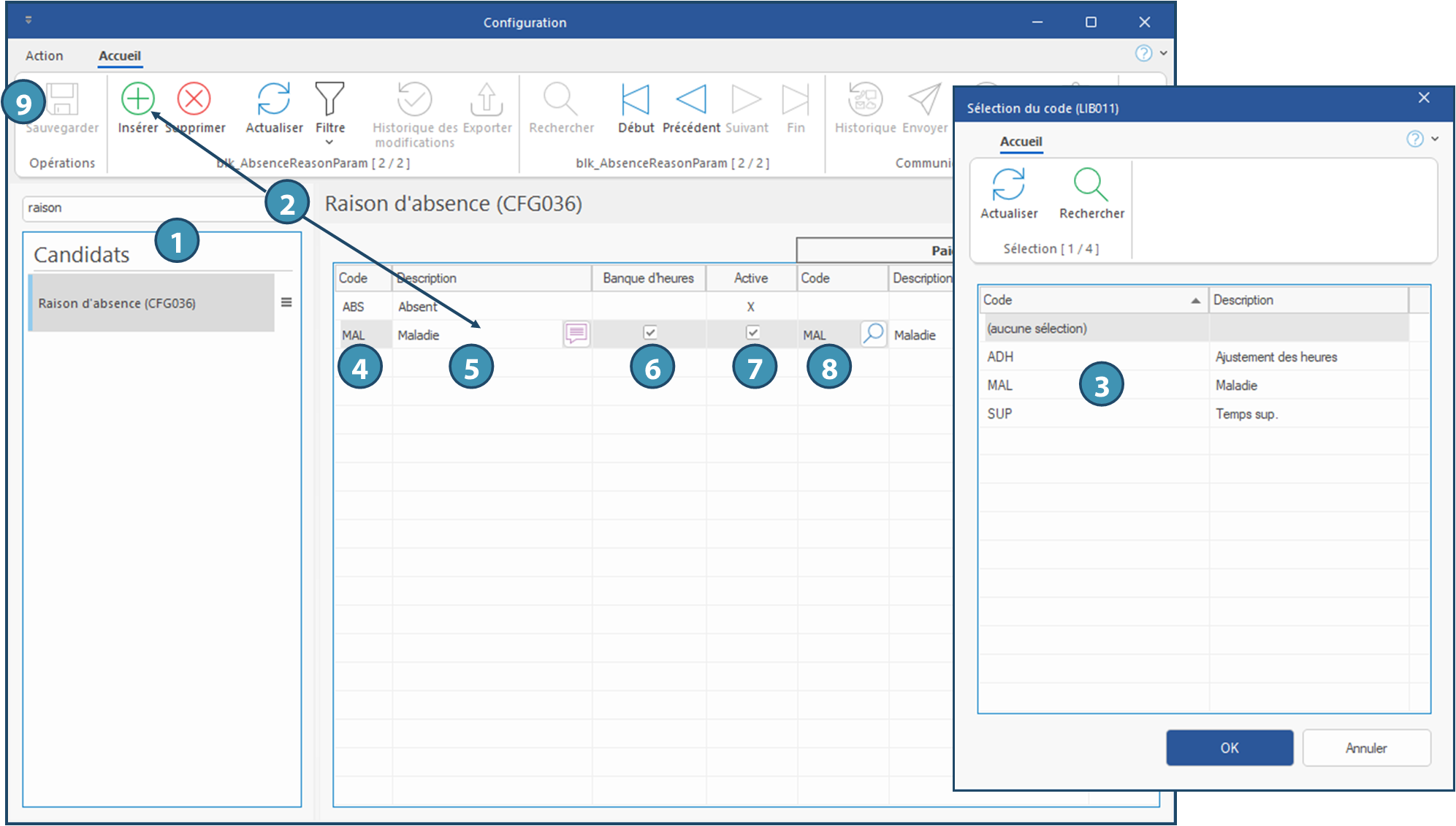 Dans l'exemple ci-dessous, nous ajouterons une nouvelle raison d'absence, « Maladie ».