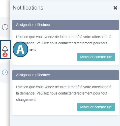 Les notifications sont des messages envoyés par l’agence à un ou plusieurs utilisateurs du portail Web. Il en existe deux types :