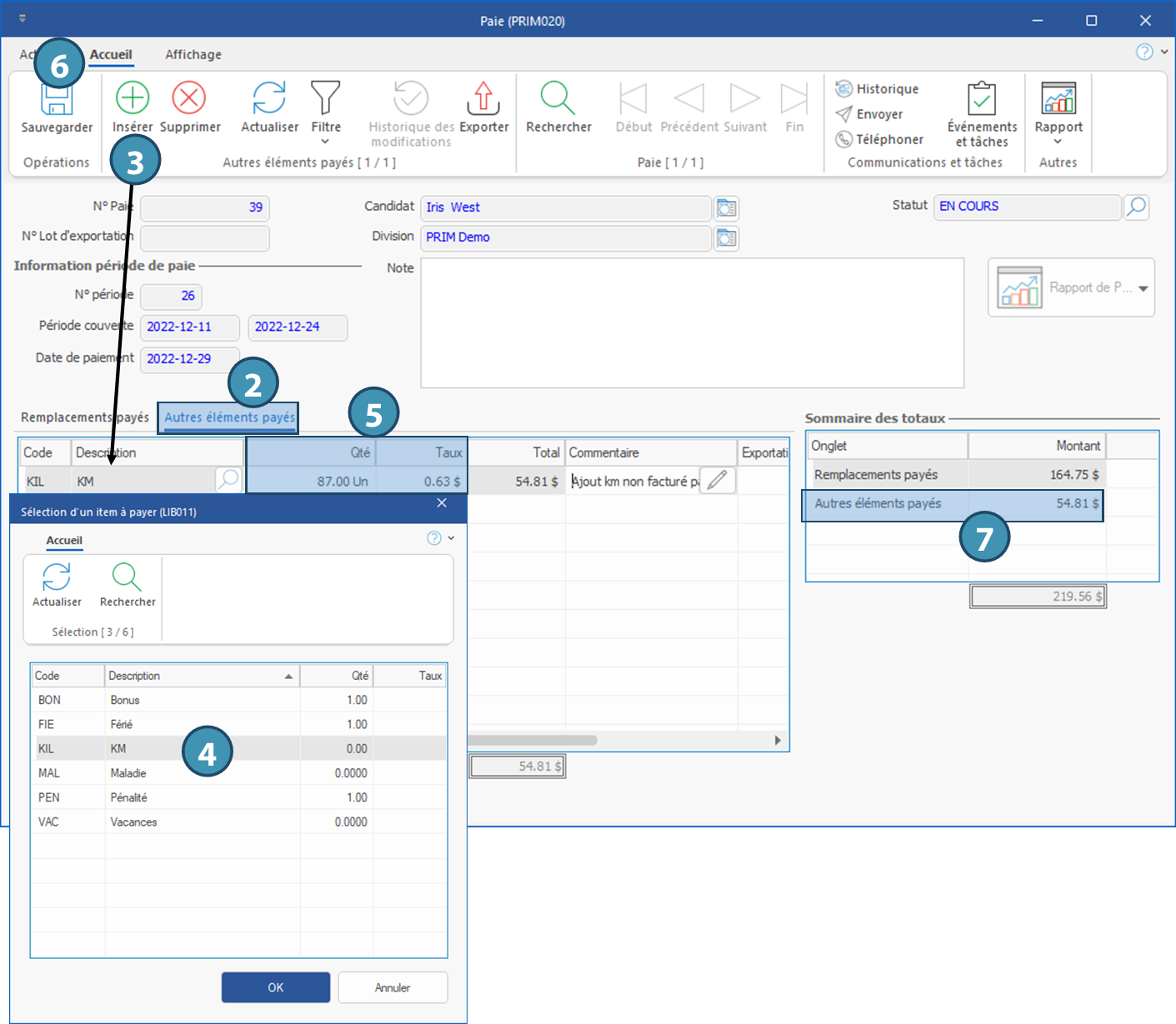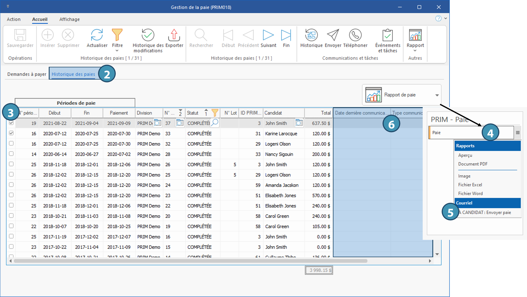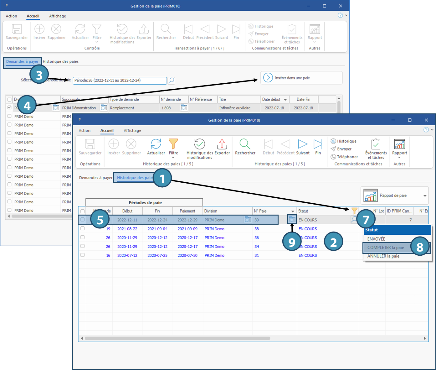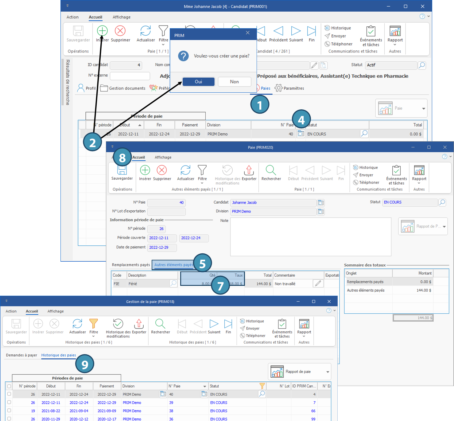 L'ajout de plus d'une paie dans une période est possible depuis la fenêtre de gestion de la paie ou depuis le dossier du candidat.