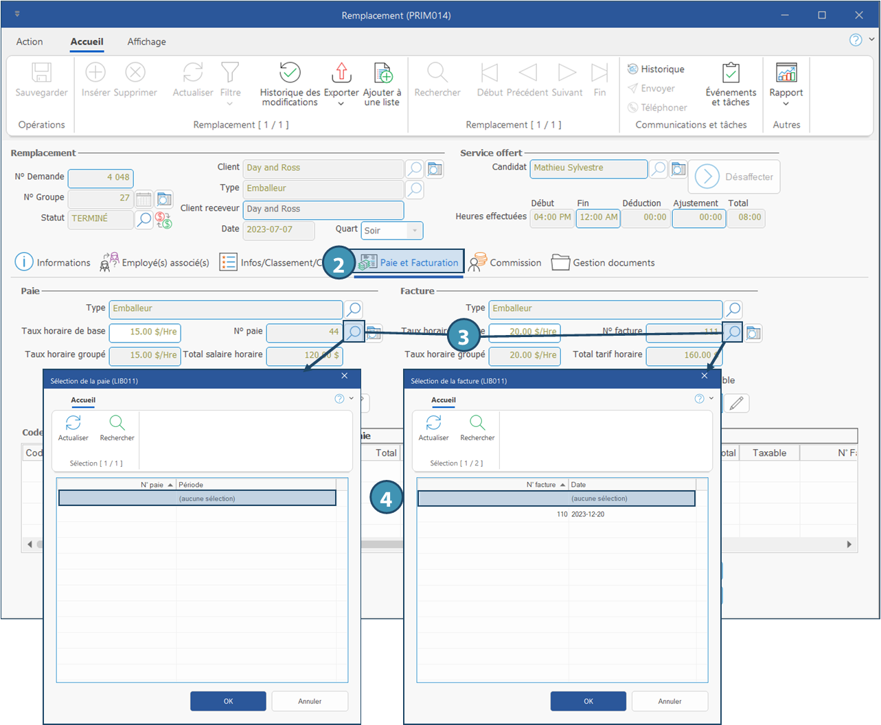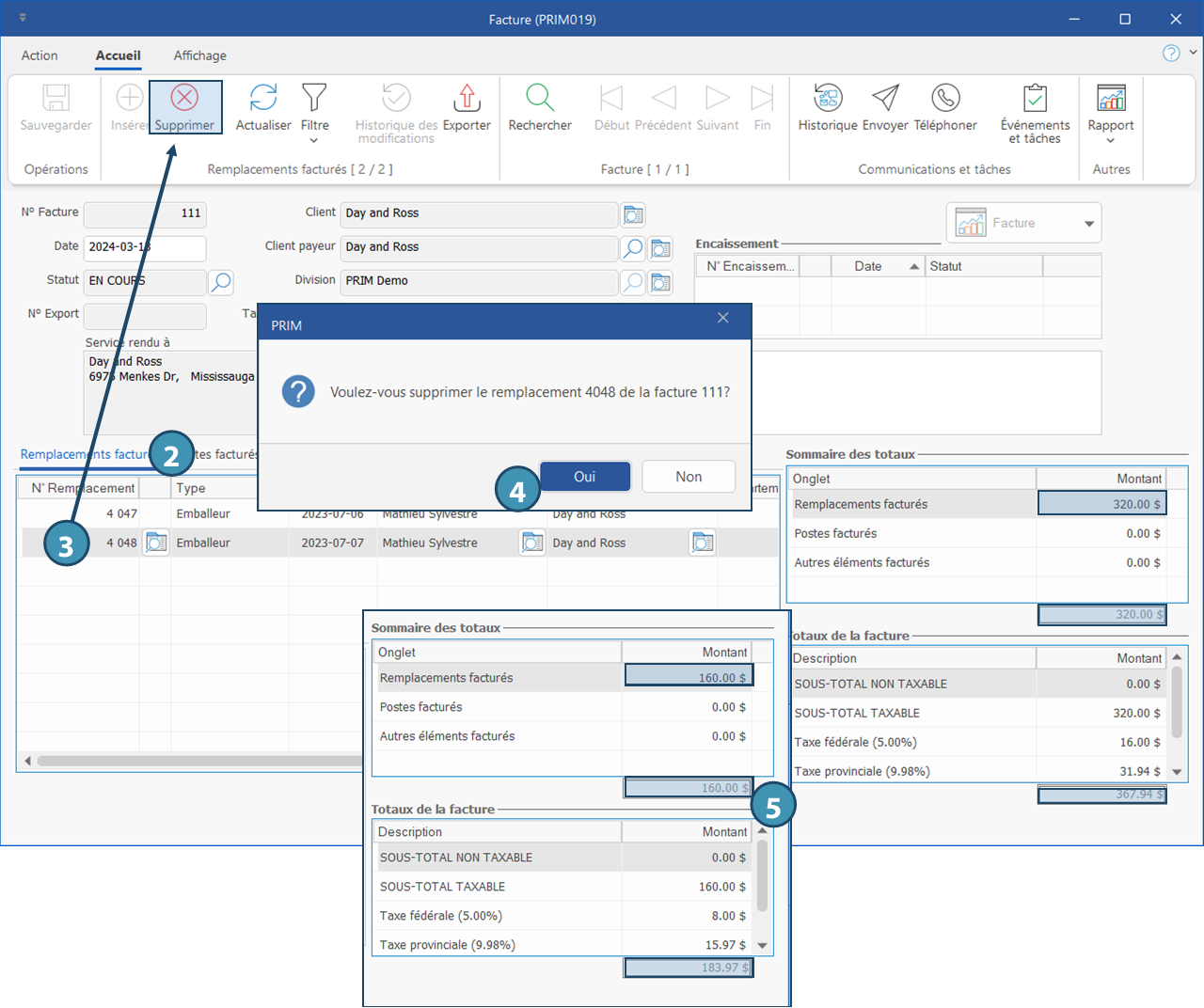L'élément retiré pourra être ajouté sur une nouvelle facture ou une nouvelle paie.